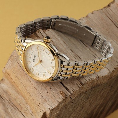 Cette montre Seiko a un boîtier Inox 28.7 mm en diamètre et est équipée d'un bracelet Inox. Le boîtier contient un mouvement Seiko et la montre est dotée d'un cristal Minéral..