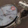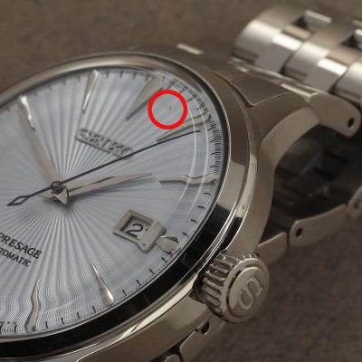 Montre retournée présentant une minuscule ébréchure sur le verre.