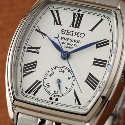 Le cadran en émail de la montre Presage Craftsmanship est fabriqué à la main par cuisson à haute température. La surface irrégulière est propre aux cadrans en émail véritable, dont il n'existe pas deux exemplaires identiques. C'est le couronnement de cette montre Seiko classique magnifiquement conçue, dotée d'un mouvement automatique de qualité 6R5H, qui peut également être remonté à la main. Le verre saphir à double courbure est doté d'un revêtement antireflet à l'intérieur pour une excellente lisibilité.
