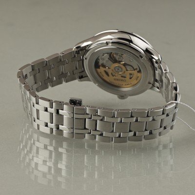 Cette montre Seiko a un boîtier Inox 41.8 mm en diamètre et est équipée d'un bracelet Inox. Le boîtier contient un mouvement Seiko et la montre est dotée d'un cristal Saphire..