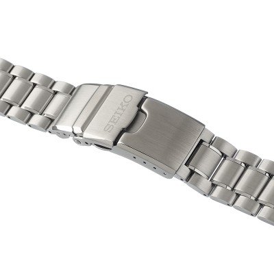Ce bracelet de montre Seikoest fait de acier inoxydable et est attaché à la montre au moyen de Épingles à ressort. Le bracelet a une taille de 20 mm et se ferme au moyen d'un boucle déployante avec boutons poussoirs et sécurité. Le bracelet n'a pas de support droit, ce qui signifie que ce bracelet convient uniquement aux montres énumérées ci-dessous.