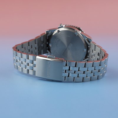 Cette montre Seiko a un boîtier Inox 37 mm en diamètre et est équipée d'un bracelet Inox. Le boîtier contient un mouvement Seiko Instruments Inc. et la montre est dotée d'un cristal Hardlex crystal..