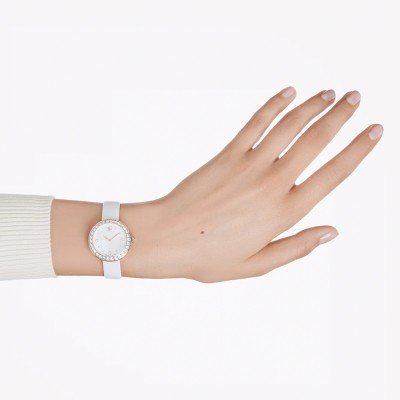 Cette montre Swarovski a un boîtier Inox 30 mm en diamètre et est équipée d'un bracelet cuir. Le boîtier contient un mouvement Ronda et la montre est dotée d'un cristal Minéral..