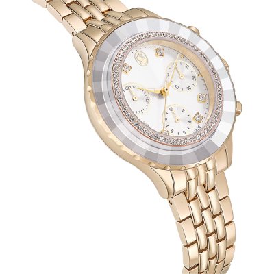 Cette montre Swarovski a un boîtier Inox 37 mm en diamètre et est équipée d'un bracelet Inox. Le boîtier contient un mouvement Ronda et la montre est dotée d'un cristal Minéral..
