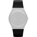 Ce bracelet de montre Swatchest fait de résine et est attaché à la montre au moyen de goupilles en acier. Le bracelet a une taille de 19.7 mm et se ferme au moyen d'un boucle. Le bracelet n'a pas de support droit, ce qui signifie que ce bracelet convient uniquement aux montres énumérées ci-dessous.