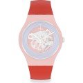 Ce bracelet de montre Swatchest fait de silicone et est attaché à la montre au moyen de goupilles en acier. Le bracelet a une taille de 19.7 mm et se ferme au moyen d'un boucle. Le bracelet n'a pas de support droit, ce qui signifie que ce bracelet convient uniquement aux montres énumérées ci-dessous.