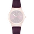 Ce bracelet de montre Swatchest fait de silicone et est attaché à la montre au moyen de goupilles en acier. Le bracelet a une taille de 19.6 mm et se ferme au moyen d'un boucle. Le bracelet n'a pas de support droit, ce qui signifie que ce bracelet convient uniquement aux montres énumérées ci-dessous.