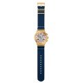 Cette montre Swatch a un boîtier Inox 43 mm en diamètre et est équipée d'un bracelet Textile. Le boîtier contient un mouvement ETA et la montre est dotée d'un cristal Acrylique..