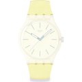 Ce bracelet de montre Swatchest fait de silicone et est attaché à la montre au moyen de goupilles en acier. Le bracelet a une taille de 19.7 mm et se ferme au moyen d'un boucle. Le bracelet n'a pas de support droit, ce qui signifie que ce bracelet convient uniquement aux montres énumérées ci-dessous.