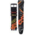 Ce bracelet de montre Swatchest fait de silicone et est attaché à la montre au moyen de goupilles en acier. Le bracelet a une taille de 19.7 mm et se ferme au moyen d'un boucle. Le bracelet n'a pas de support droit, ce qui signifie que ce bracelet convient uniquement aux montres énumérées ci-dessous.