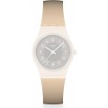 Ce bracelet de montre Swatchest fait de silicone et est attaché à la montre au moyen de goupilles en acier. Le bracelet a une taille de 12 mm et se ferme au moyen d'un boucle. Le bracelet n'a pas de support droit, ce qui signifie que ce bracelet convient uniquement aux montres énumérées ci-dessous.