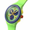 Cette montre Swatch a un boîtier Résine 42 mm en diamètre et est équipée d'un bracelet caoutchouc. Le boîtier contient un mouvement ETA et la montre est dotée d'un cristal Acrylique..