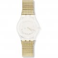 Ce bracelet de montre Swatchest fait de acier inoxydable et est attaché à la montre au moyen de goupilles en acier. Le bracelet a une taille de 17 mm. Le bracelet n'a pas de support droit, ce qui signifie que ce bracelet convient uniquement aux montres énumérées ci-dessous.