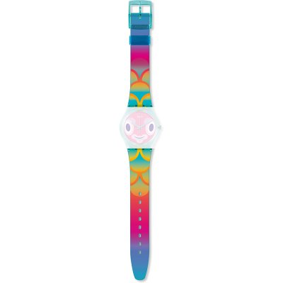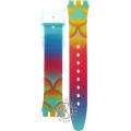 Ce bracelet de montre Swatchest fait de résine et est attaché à la montre au moyen de goupilles en acier. Le bracelet a une taille de 17 mm et se ferme au moyen d'un boucle. Le bracelet n'a pas de support droit, ce qui signifie que ce bracelet convient uniquement aux montres énumérées ci-dessous.