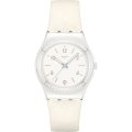 Ce bracelet de montre Swatchest fait de cuir et est attaché à la montre au moyen de goupilles en acier. Le bracelet a une taille de 17 mm et se ferme au moyen d'un boucle. Le bracelet n'a pas de support droit, ce qui signifie que ce bracelet convient uniquement aux montres énumérées ci-dessous.