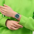 Cette montre Swatch a un boîtier Inox 43 mm en diamètre et est équipée d'un bracelet caoutchouc. Le boîtier contient un mouvement ETA et la montre est dotée d'un cristal Acrylique..