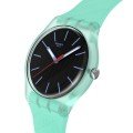 Cette montre Swatch a un boîtier Plastique biosourcé 41 mm en diamètre et est équipée d'un bracelet caoutchouc. Le boîtier contient un mouvement ETA et la montre est dotée d'un cristal Acrylique..