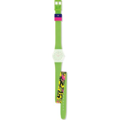 Ce bracelet de montre Swatchest fait de silicone et est attaché à la montre au moyen de goupilles en acier. Le bracelet a une taille de 12 mm et se ferme au moyen d'un boucle. Le bracelet n'a pas de support droit, ce qui signifie que ce bracelet convient uniquement aux montres énumérées ci-dessous.