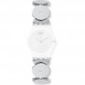Ce bracelet de montre Swatchest fait de acier inoxydable et est attaché à la montre au moyen de goupilles en acier. Le bracelet a une taille de 12 mm et se ferme au moyen d'un fermoir bijoux. Le bracelet n'a pas de support droit, ce qui signifie que ce bracelet convient uniquement aux montres énumérées ci-dessous.