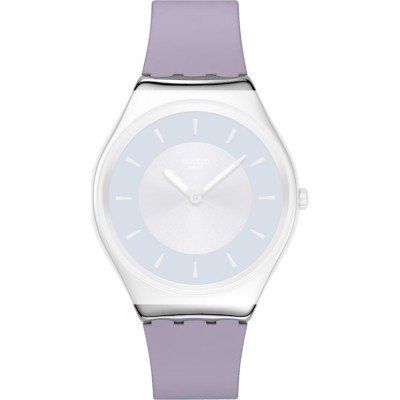 Ce bracelet de montre Swatchest fait de silicone et est attaché à la montre au moyen de goupilles en acier. Le bracelet a une taille de 15.9 mm et se ferme au moyen d'un boucle. Le bracelet n'a pas de support droit, ce qui signifie que ce bracelet convient uniquement aux montres énumérées ci-dessous.