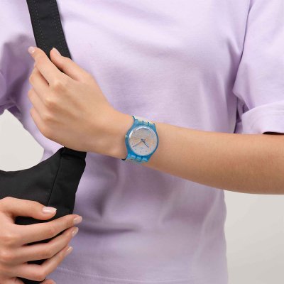 Cette montre Swatch a un boîtier Plastique biosourcé 41 mm en diamètre et est équipée d'un bracelet caoutchouc. Le boîtier contient un mouvement ETA et la montre est dotée d'un cristal Acrylique..