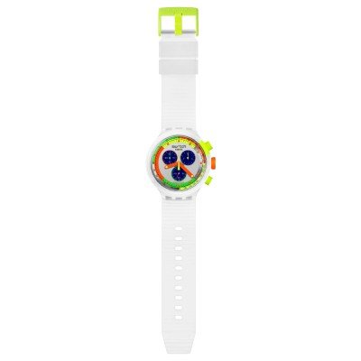 Cette montre Swatch a un boîtier Résine 47 mm en diamètre et est équipée d'un bracelet caoutchouc. Le boîtier contient un mouvement ETA et la montre est dotée d'un cristal Acrylique..