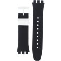 Ce bracelet de montre Swatchest fait de silicone et est attaché à la montre au moyen de goupilles en acier. Le bracelet a une taille de 20.1 mm et se ferme au moyen d'un boucle. Le bracelet n'a pas de support droit, ce qui signifie que ce bracelet convient uniquement aux montres énumérées ci-dessous.