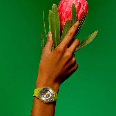 Cette montre Swatch a un boîtier Plastique biosourcé 33.7 mm en diamètre et est équipée d'un bracelet caoutchouc. Le boîtier contient un mouvement ETA et la montre est dotée d'un cristal Acrylique..