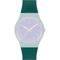 Ce bracelet de montre Swatchest fait de silicone et est attaché à la montre au moyen de goupilles en acier. Le bracelet a une taille de 17 mm et se ferme au moyen d'un boucle. Le bracelet n'a pas de support droit, ce qui signifie que ce bracelet convient uniquement aux montres énumérées ci-dessous.