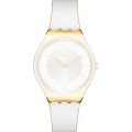 Ce bracelet de montre Swatchest fait de cuir et est attaché à la montre au moyen de goupilles en acier. Le bracelet a une taille de 15.9 mm et se ferme au moyen d'un boucle. Le bracelet n'a pas de support droit, ce qui signifie que ce bracelet convient uniquement aux montres énumérées ci-dessous.