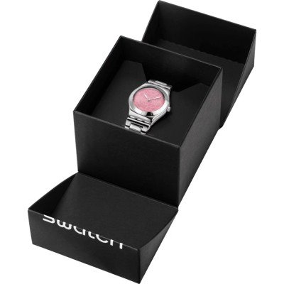 Cette montre Swatch a un boîtier Inox 33 mm en diamètre et est équipée d'un bracelet Inox. Le boîtier contient un mouvement ETA et la montre est dotée d'un cristal Acrylique..