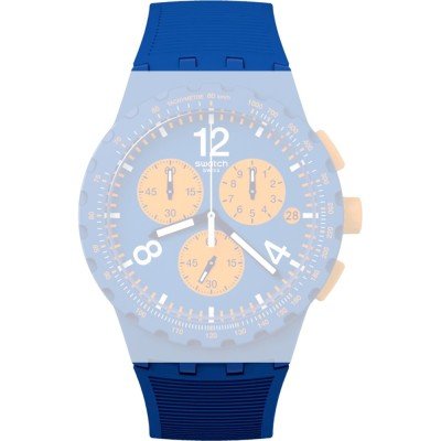 Ce bracelet de montre Swatchest fait de silicone et est attaché à la montre au moyen de goupilles en acier. Le bracelet a une taille de 20.1 mm et se ferme au moyen d'un boucle. Le bracelet n'a pas de support droit, ce qui signifie que ce bracelet convient uniquement aux montres énumérées ci-dessous.