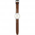 Ce bracelet de montre Swatchest fait de cuir et est attaché à la montre au moyen de goupilles en acier. Le bracelet a une taille de 17 mm et se ferme au moyen d'un boucle. Le bracelet n'a pas de support droit, ce qui signifie que ce bracelet convient uniquement aux montres énumérées ci-dessous.