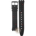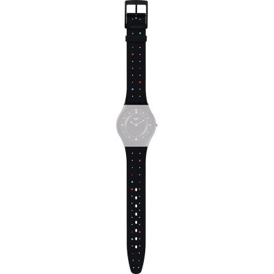 Ce bracelet de montre Swatchest fait de silicone et est attaché à la montre au moyen de goupilles en acier. Le bracelet a une taille de 16.5 mm et se ferme au moyen d'un boucle. Le bracelet n'a pas de support droit, ce qui signifie que ce bracelet convient uniquement aux montres énumérées ci-dessous.