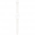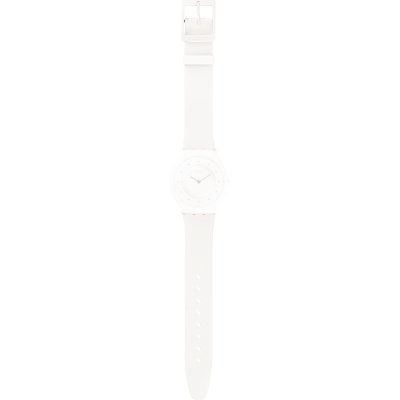 Ce bracelet de montre Swatchest fait de silicone et est attaché à la montre au moyen de goupilles en acier. Le bracelet a une taille de 16.5 mm et se ferme au moyen d'un boucle. Le bracelet n'a pas de support droit, ce qui signifie que ce bracelet convient uniquement aux montres énumérées ci-dessous.
