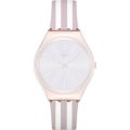 Ce bracelet de montre Swatchest fait de silicone et est attaché à la montre au moyen de goupilles en acier. Le bracelet a une taille de 15.9 mm et se ferme au moyen d'un boucle. Le bracelet n'a pas de support droit, ce qui signifie que ce bracelet convient uniquement aux montres énumérées ci-dessous.