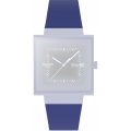 Ce bracelet de montre Swatchest fait de silicone et est attaché à la montre au moyen de goupilles en acier. Le bracelet a une taille de 21 mm et se ferme au moyen d'un boucle. Le bracelet n'a pas de support droit, ce qui signifie que ce bracelet convient uniquement aux montres énumérées ci-dessous.