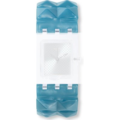 Ce bracelet de montre Swatchest fait de résine et est attaché à la montre au moyen de goupilles en acier. Le bracelet a une taille de 18 mm. Le bracelet n'a pas de support droit, ce qui signifie que ce bracelet convient uniquement aux montres énumérées ci-dessous.