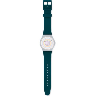 Ce bracelet de montre Swatchest fait de silicone et est attaché à la montre au moyen de goupilles en acier. Le bracelet a une taille de 19.7 mm et se ferme au moyen d'un boucle. Le bracelet n'a pas de support droit, ce qui signifie que ce bracelet convient uniquement aux montres énumérées ci-dessous.