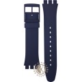 Ce bracelet de montre Swatchest fait de silicone et est attaché à la montre au moyen de goupilles en acier. Le bracelet a une taille de 19.7 mm et se ferme au moyen d'un boucle. Le bracelet n'a pas de support droit, ce qui signifie que ce bracelet convient uniquement aux montres énumérées ci-dessous.