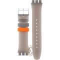 Ce bracelet de montre Swatchest fait de silicone et est attaché à la montre au moyen de goupilles en acier. Le bracelet a une taille de 19.7 mm et se ferme au moyen d'un boucle. Le bracelet n'a pas de support droit, ce qui signifie que ce bracelet convient uniquement aux montres énumérées ci-dessous.