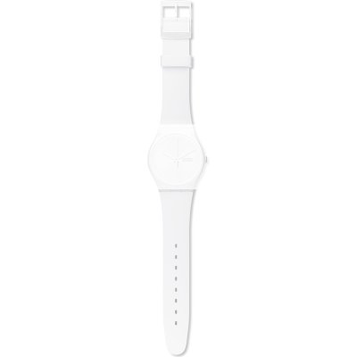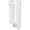 Ce bracelet de montre Swatchest fait de silicone et est attaché à la montre au moyen de goupilles en acier. Le bracelet a une taille de 19.7 mm et se ferme au moyen d'un boucle. Le bracelet n'a pas de support droit, ce qui signifie que ce bracelet convient uniquement aux montres énumérées ci-dessous.