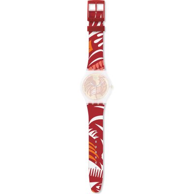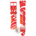 Ce bracelet de montre Swatchest fait de silicone et est attaché à la montre au moyen de goupilles en acier. Le bracelet a une taille de 19.7 mm et se ferme au moyen d'un boucle. Le bracelet n'a pas de support droit, ce qui signifie que ce bracelet convient uniquement aux montres énumérées ci-dessous.