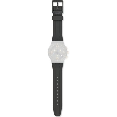 Ce bracelet de montre Swatchest fait de silicone et est attaché à la montre au moyen de goupilles en acier. Le bracelet a une taille de 20.1 mm et se ferme au moyen d'un boucle. Le bracelet n'a pas de support droit, ce qui signifie que ce bracelet convient uniquement aux montres énumérées ci-dessous.