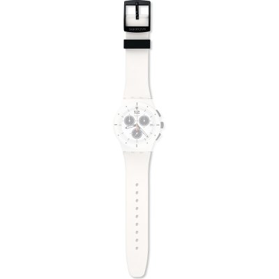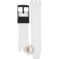 Ce bracelet de montre Swatchest fait de silicone et est attaché à la montre au moyen de goupilles en acier. Le bracelet a une taille de 20.1 mm et se ferme au moyen d'un boucle. Le bracelet n'a pas de support droit, ce qui signifie que ce bracelet convient uniquement aux montres énumérées ci-dessous.
