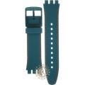 Ce bracelet de montre Swatchest fait de silicone et est attaché à la montre au moyen de goupilles en acier. Le bracelet a une taille de 19.8 mm et se ferme au moyen d'un boucle. Le bracelet n'a pas de support droit, ce qui signifie que ce bracelet convient uniquement aux montres énumérées ci-dessous.