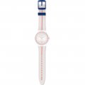Ce bracelet de montre Swatchest fait de silicone et est attaché à la montre au moyen de goupilles en acier. Le bracelet a une taille de 19.8 mm et se ferme au moyen d'un boucle. Le bracelet n'a pas de support droit, ce qui signifie que ce bracelet convient uniquement aux montres énumérées ci-dessous.