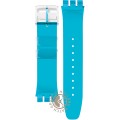 Ce bracelet de montre Swatchest fait de silicone et est attaché à la montre au moyen de goupilles en acier. Le bracelet a une taille de 21.3 mm et se ferme au moyen d'un boucle. Le bracelet n'a pas de support droit, ce qui signifie que ce bracelet convient uniquement aux montres énumérées ci-dessous.