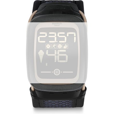 Ce bracelet de montre Swatchest fait de textile et est attaché à la montre au moyen de goupilles en acier. Le bracelet a une taille de 28 mm et se ferme au moyen d'un boucle. Le bracelet n'a pas de support droit, ce qui signifie que ce bracelet convient uniquement aux montres énumérées ci-dessous.