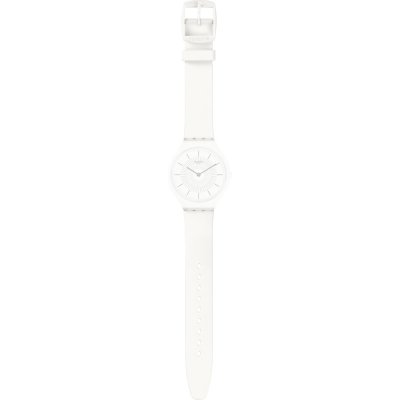 Ce bracelet de montre Swatchest fait de silicone et est attaché à la montre au moyen de goupilles en acier. Le bracelet a une taille de 14.6 mm et se ferme au moyen d'un boucle. Le bracelet n'a pas de support droit, ce qui signifie que ce bracelet convient uniquement aux montres énumérées ci-dessous.